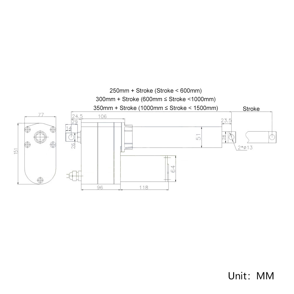 Stroke range: 0.4 ~ 26 inches or 10 ~ 650 mm (If you want to view detailed information of linear actuators with different
