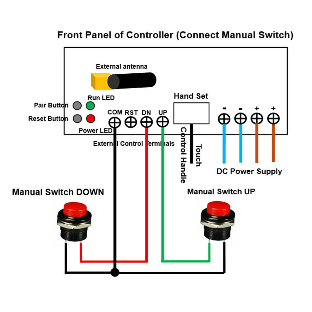 controller, and connect two terminals of the DOWN button to the terminals DOWN