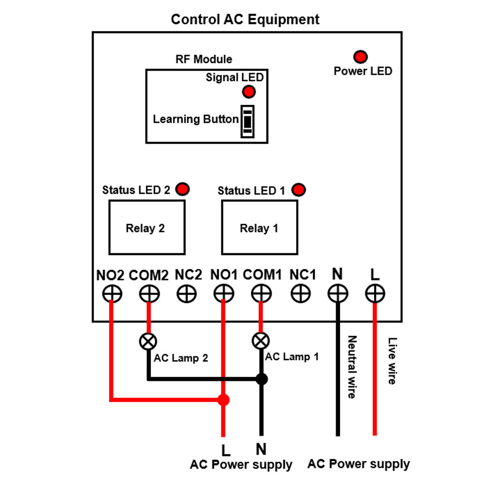 The receiver can be used to control both 0~28VDC and 110~240VAC devices.