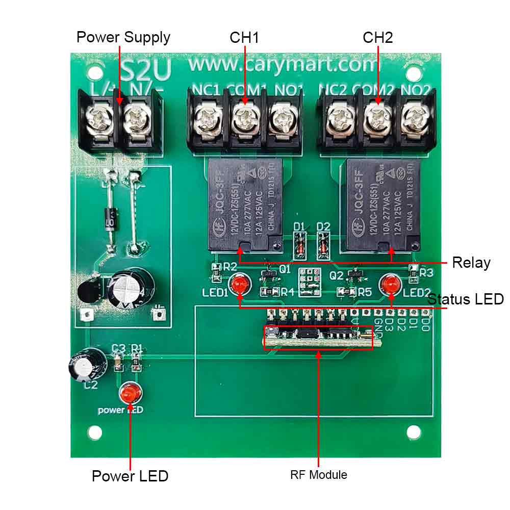 The receiver can be used to control both 0~28VDC and 110~240VAC devices.