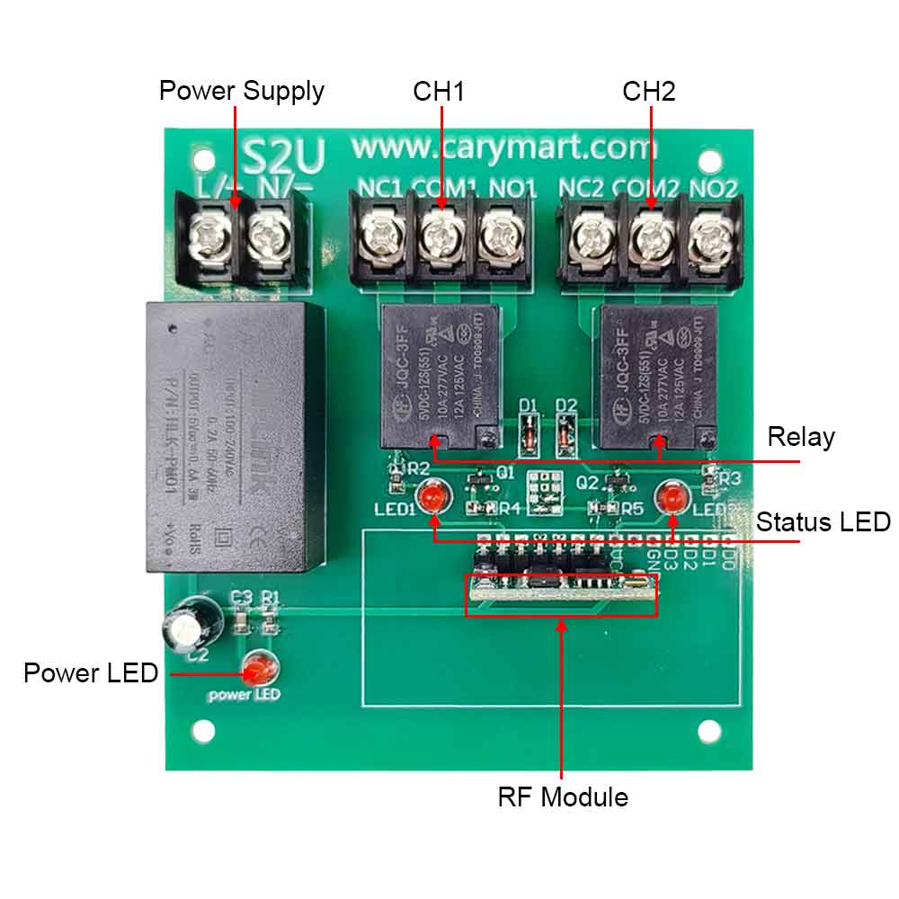 The receiver can be used to control both 0~28VDC and 110~240VAC devices.